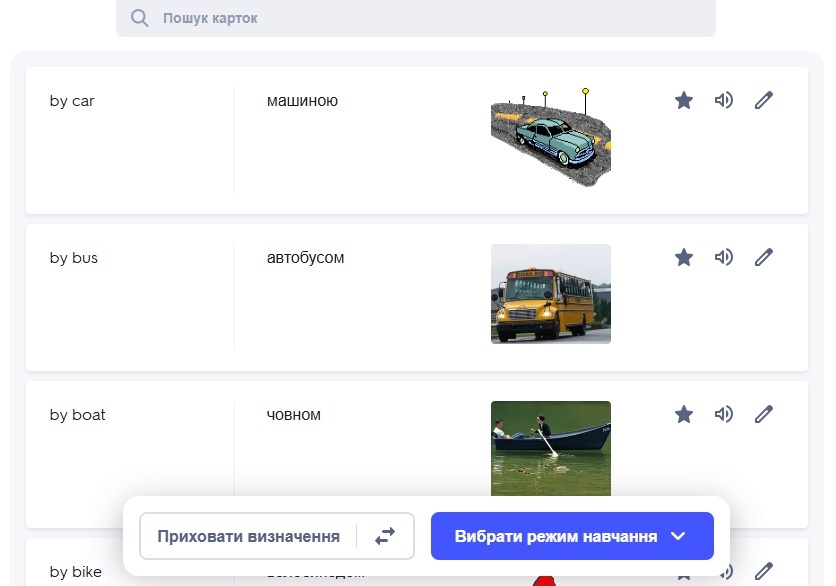 * Вивчення нової лексики: Створіть набір карток з новими словами і використовуйте режим ‘Learn’ для їх запам’ятовування.