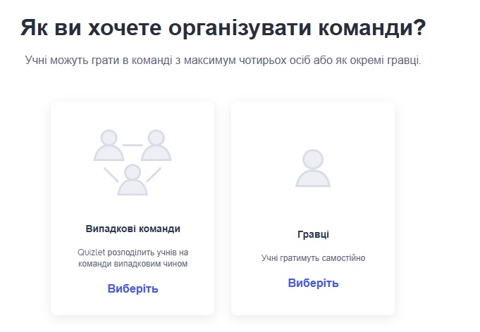 * Групові ігри: Проведіть змагання між командами, використовуючи різні режими Quizlet.