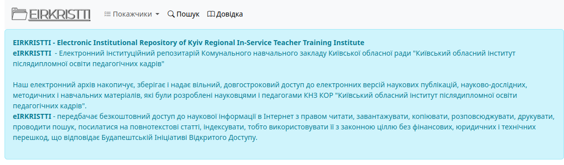Електронний інституційний репозитарій КНЗ КОР «Київський обласний інститут післядипломної освіти педагогічних кадрів» (https://eir.kristti.com.ua/) містить низку матеріалів, присвячених питанням безпеки в освіті, зокрема аспектам кібербезпеки та цифрової грамотності.